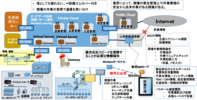 クラウドもインターネットを使用したパブリッククラウドとインターネットを使用しないプライベートクラウドの二種類がある。インターネットを使用する場合、サイバー攻撃のリスクを抱える。インターネットを使用しない場合は、現場のマルウェア侵入対策のサイバーセキュリティ対策を実施することに集中すれば良い。